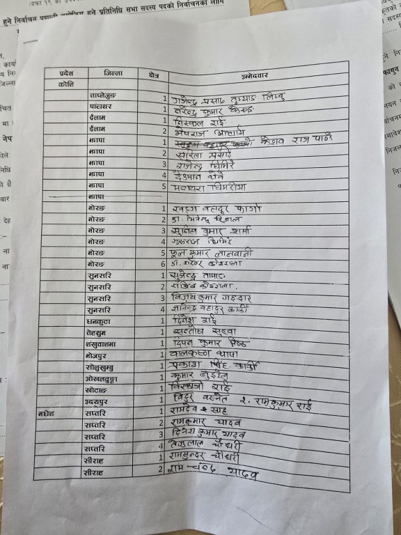 सभापति थापाले शेरबहादुर देउवा र शेखर कोइराला पक्षका नेताहरूलाई पनि समेटेर टिकट बाँडेका छन् । सभापति थापा काठमाडौं सर्लाही ४ बाट उम्मेदवार बनेका छन् ।