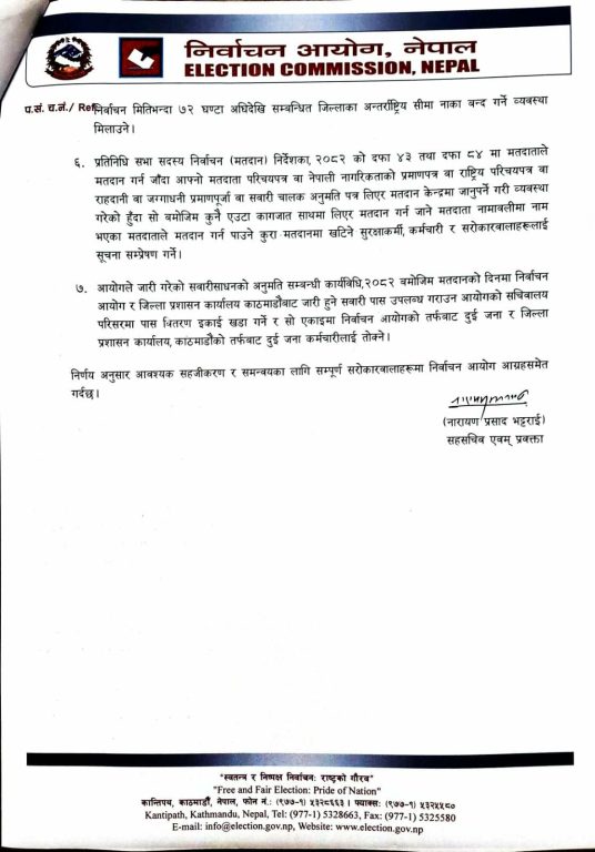 निर्वाचन सुरक्षाको प्रबन्ध मिलाउन सरकारलाई आयोगले पठायो पत्र