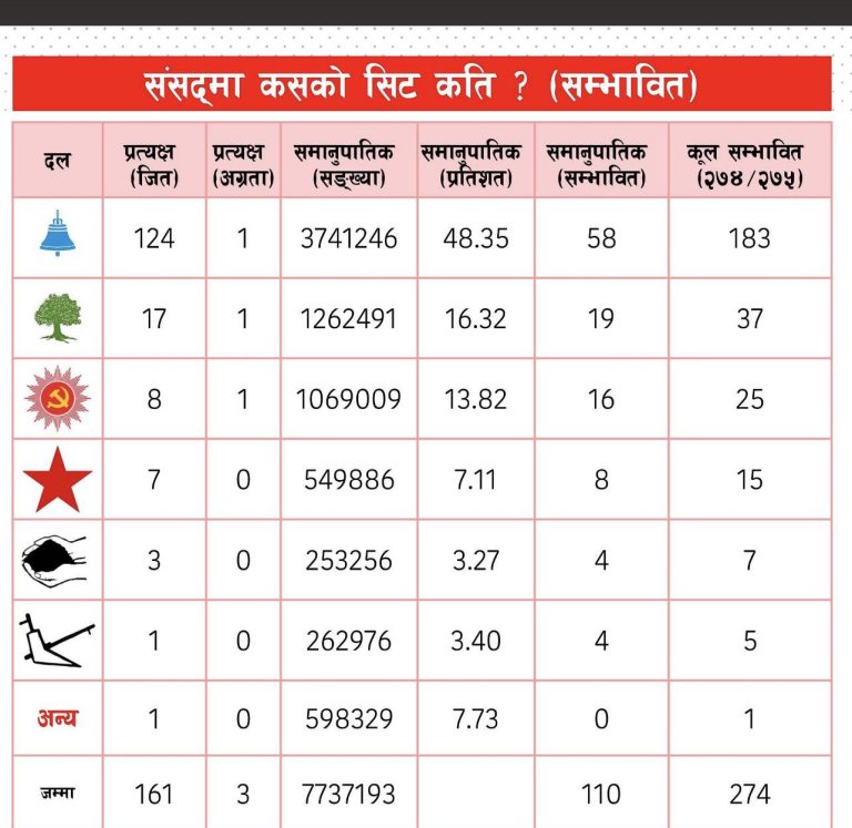 अझै ८ निर्वाचन क्षेत्रको समानुपातिक मतगणना बाँकी