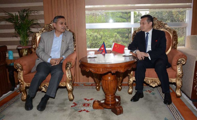 गृहमन्त्री अर्याल र नेपालका लागि चिनियाँ राजदूत चाङबीच शिष्टाचार भेट
