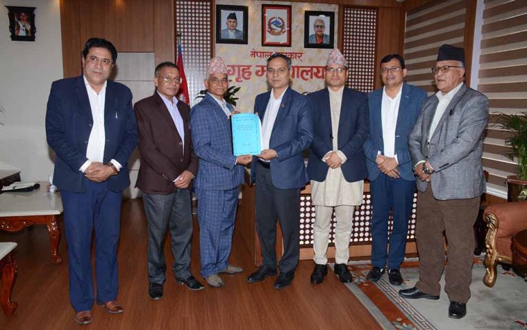 काठमाडौं । यातायात क्षेत्रसम्बन्धी सर्वोच्च अदालतका आदेशहरू कार्यान्वयन सम्बन्धमा गठित जाँचबुझ आयोगले गृहमन्त्री ओमप्रकाश अर्यालसमक्ष प्रतिवेदन बुझाएको छ । आयोगका सदस्यहरूले सिंहदरबारमा रहेको मन्त्रालयमा पुगेर आज गृहमन्त्री अर्यालसमक्ष प्रतिवेदन बुझाएका हुन् ।