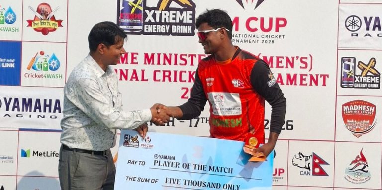 प्रधानमन्त्री कप क्रिकेटमा सुदूरपश्चिम मधेससँग पाँच विकेटले पराजित