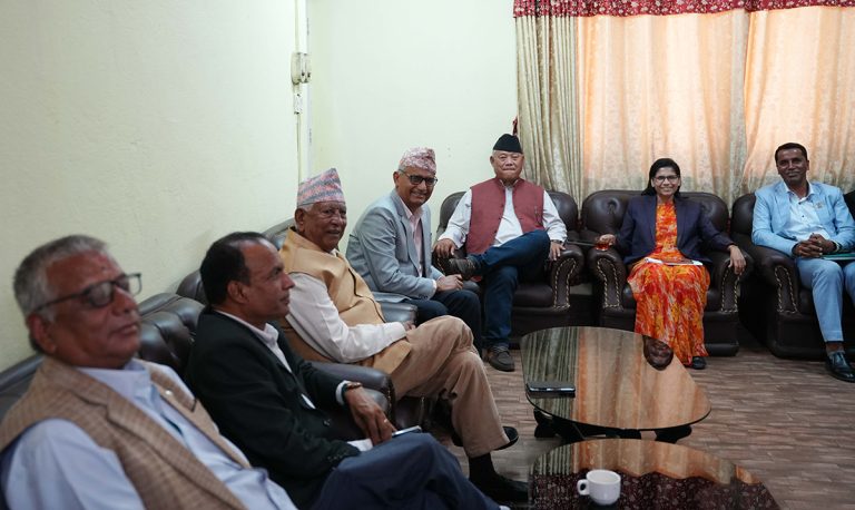 काठमाडौं । प्रतिनिधिसभाका विपक्षी दलका नेताहरू छलफलमा जुटेका छन् । संघीय संसदीय समितिका सभापतिमा उमेदवारीका विषयमा नेताहरूले छलफल गरिरहेका हुन् । सिंहदबारस्थित नेपाली कांग्रेस संसदीय दलको कार्यालयमा छलफल जारी छ ।
