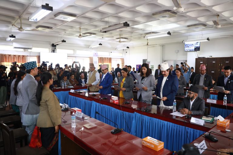 काठमाडौं । संघीय संसदअन्तर्गतका १२ वटा संसदीय समितिका सभापतिले शपथ ग्रहण गरेका छन् । शुक्रबार भएको निर्वाचनबाट १० वटा समितिमा सर्वसम्मत सभापति चयन भएका हुन् । दुईवटामा भने निर्वाचन भएको थियो ।