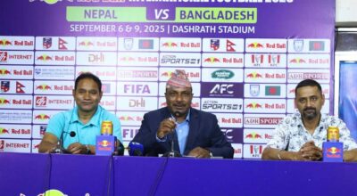 काठमाडौँ । अखिल नेपाल फुटबल सङ्घ (एन्फा) को पहलमा नेपाल र बङ्गलादेशबीच आगामी भदौ २१