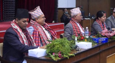 काठमाडौं । राष्ट्रिय सभाअन्तर्गतका चार विषयगत समितिका नवनिर्वाचित सभापतिहरूले सपथ लिएका छन् । बिहीबार सिंहदरबारस्थित