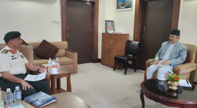 काठमाडौं । गृहमन्त्री बालकृष्ण खाण र प्रधानसेनापति प्रभुराम शर्माबीच भेटवार्ता भएको छ । गृह मन्त्रालयमा