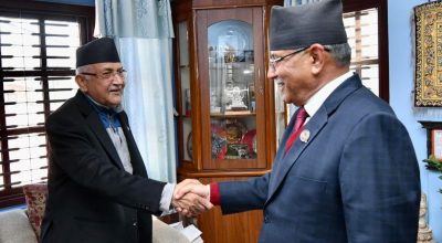 काठमाडौं । माओवादी केन्द्रका अध्यक्ष पुष्पकमल दाहाललाई प्रधानमन्त्री बनाउने सहमति भएसँगै एमालेका अध्यक्ष केपी शर्मा