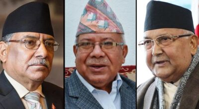 काठमाडौं । प्रधानमन्त्री पुष्पकमल दाहाल प्रचण्ड, नेकपा एमालेका अध्यक्ष केपी शर्मा ओली र नेकपा एकीकृत