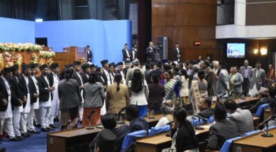 काठमाडौं । विपक्षी दलका सांसदहरुलाई वेलमा घेरेर प्रधानमन्त्री पुष्पकमल दाहाल प्रचण्डले विश्वासको मत लिएका छन्
