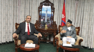 काठमाडौं । सभामुख देवराज घिमिरेसँग संयुक्त अरब इमिरेट्स (युएई)का राजदूत अबदुल्ला सइद मुवारक जरवान अलसाम्सीले