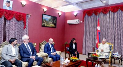 काठमाडौं । राष्ट्रपति रामचन्द्र पौडेलसँग जर्मनीको फ्रेडरिक एबर्ट स्टिफटुङका ग्लोबल प्रेसिडेन्ट डा मार्टिन सुल्जले शिष्टाचार