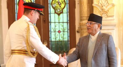 काठमाडौं । प्रधानमन्त्री पुष्पकमल दाहाल ‘प्रचण्ड’सँग बेलायती सेनाका सेनाध्यक्ष जनरल सर प्याट्रिक स्यान्डर्सले शिष्टाचार भेट