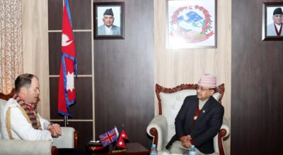 काठमाडौं । उपप्रधानमन्त्री एवम् रक्षामन्त्री पूर्णबहादुर खड्कासँग बेलायती सेनाका सेनाध्यक्ष जनरल सर प्याट्रिक स्यान्डर्सले शिष्टाचार