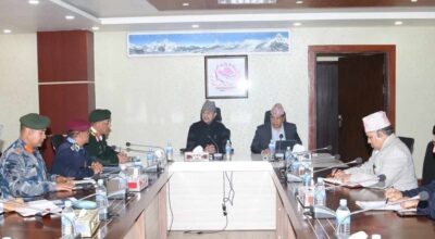 काठमाडौं । कार्यवाहक प्रधानमन्त्री पूर्णबहादुर खड्काले राष्ट्रियसभा निर्वाचन समेतलाई ध्यानमा राखी शान्ति सुरक्षाको अवस्था दुरुस्त
