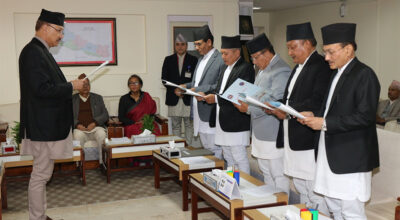 काठमाडौं । विशेष अदालतका नवनियुक्त अध्यक्ष र सदस्यहरुले पद तथा गोपनीयताको शपथ ग्रहण गरेका छन