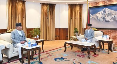 काठमाडौं । राष्ट्रपति रामचन्द्र पौडेलसँग प्रधानमन्त्री पुष्पकमल दाहाल ‘प्रचण्ड’ले भेटवार्ता गरेका छन् । राष्ट्रपति कार्यालय