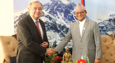 पाेखरा । संयुक्त राष्ट्रसङ्घका महासचिव एन्टोनियो गुटेरेसको सुरक्षार्थ अन्नपूर्ण आधार शिविरमा खटिएका प्रहरी सहायक निरीक्षक