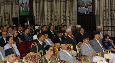 काठमाडौं । संविधान दिवसका अवसरमा राष्ट्रपति रामचन्द्र पौडेलले आयोजना गरेको रात्रिभोजमा नेपाली कांग्रेसका सभापति शेरबहादुर