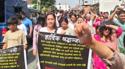 काठमाडौं । पूर्वराष्ट्रपति विद्यादेवी भण्डारीको निवास अगाडि शान्तिपूर्ण र्याली निस्केको छ । जेनजी आन्दोलनमा राजनीतिक