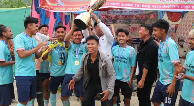 गलेश्वर । म्याग्दीको बेनीनगरपालिका-२ बगरफाँटमा आयोजना गरिएको रु एक लाख पुरस्कार राशिको प्रथम सेभेन ए