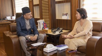 काठमाडौं । अर्थमन्त्री डा. प्रकाशशरण महतसँग युरोपियन युनियन प्रतिनिधिमण्डलका राजदूत एमएस नोनी डिपरेजले शुक्रबार भेट