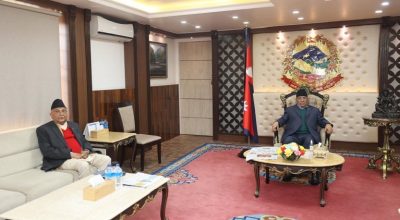 काठमाडौँ । नेकपा (एमाले) का अध्यक्ष केपी शर्मा ओली प्रधानमन्त्री पुष्पकमल दाहाल ‘प्रचण्ड’लाई भेट्न बालुवाटार