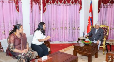 काठमाडौं । राष्ट्रपति पौडेलसँग प्यालेस्टिनी समूह हमासले बन्धक बनाएका महेन्द्रनगरका विपिन जोशीका आमा र बहिनीले