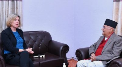 काठमाडौं । नेकपा एमाले अध्यक्ष केपी शर्मा ओलीसँग नेपालका लागि संयुक्त अधिराज्य बेलायतका राजदूत निकोला