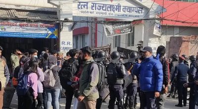 काठमाडौँ । काठमाडौँको प्रदर्शनीमार्गस्थित आरआर क्याम्पसमा खुकुरी प्रहार हुँदा तीन विद्यार्थी घाइते भएका छन्। स्ववियु