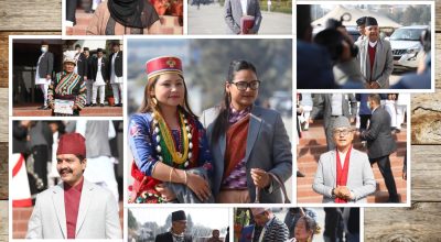 सपथग्रहणका लागि नयाँ बानेश्वरस्थित संसद भवनमा उस्थित हुँदै गरेको प्रतिनिधिसभाका नवनिर्वाचित सांसदहरू । आज दिउँसो