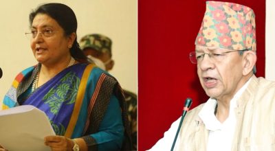 काठमाडौं । राष्ट्रपति विद्यादेवी भण्डारीले सङ्घीय संसद् प्रतिनिधिसभाका नवनिर्वाचित ज्येष्ठ सदस्य पशुपति शम्शेर जबरालाई आज