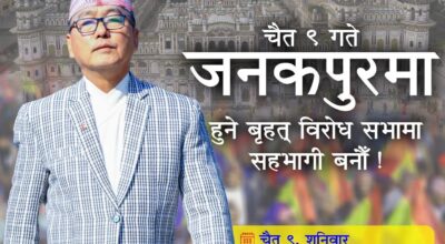 काठमाडौं। राष्ट्रिय प्रजातन्त्र पार्टीले आज जनकपुरमा खबरदारी सभा गर्दैछ । पोखरावाट सुरू भएको खबरदारी सभा