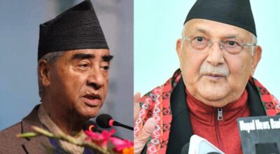काठमाडौँ । नेपाली काँग्रेसका सभापति शेरबहादुर देउवा र नेकपा एमालेका अध्यक्ष केपी शर्मा ओलीबीच शनिबार