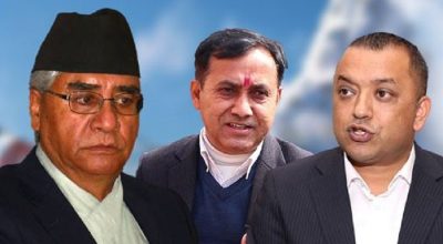 काठमाडौं । नेपाली कांग्रेसका सभापति शेरबहादुर देउवा र महामन्त्रीद्वय गगनकुमार थापा र विश्वप्रकाश शर्माबीचको वार्ता