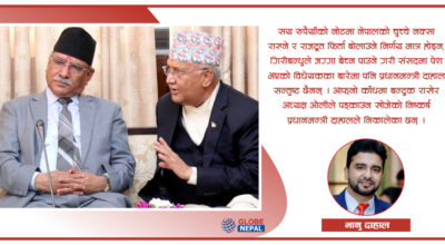 प्रधानमन्त्री पुष्पकमल दाहाल ‘प्रचण्ड’ सत्ता गठबन्धनका सहयात्री नेकपा एमाले अध्यक्ष केपी शर्मा ओली र राष्ट्रिय