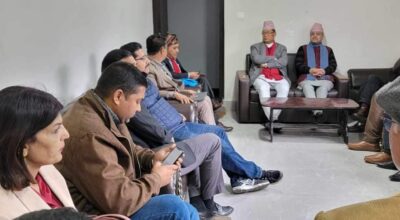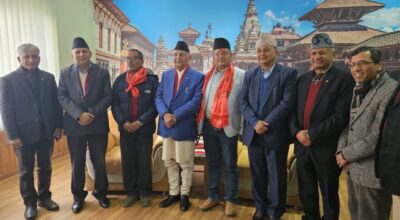 काठमाडौं । नेपाली कांग्रेसका उपसभापतिद्वय पूर्णबहादुर खड्का र धनराज गुरुङ, महामन्त्रीद्वय गगन थापा र विश्वप्रकाश