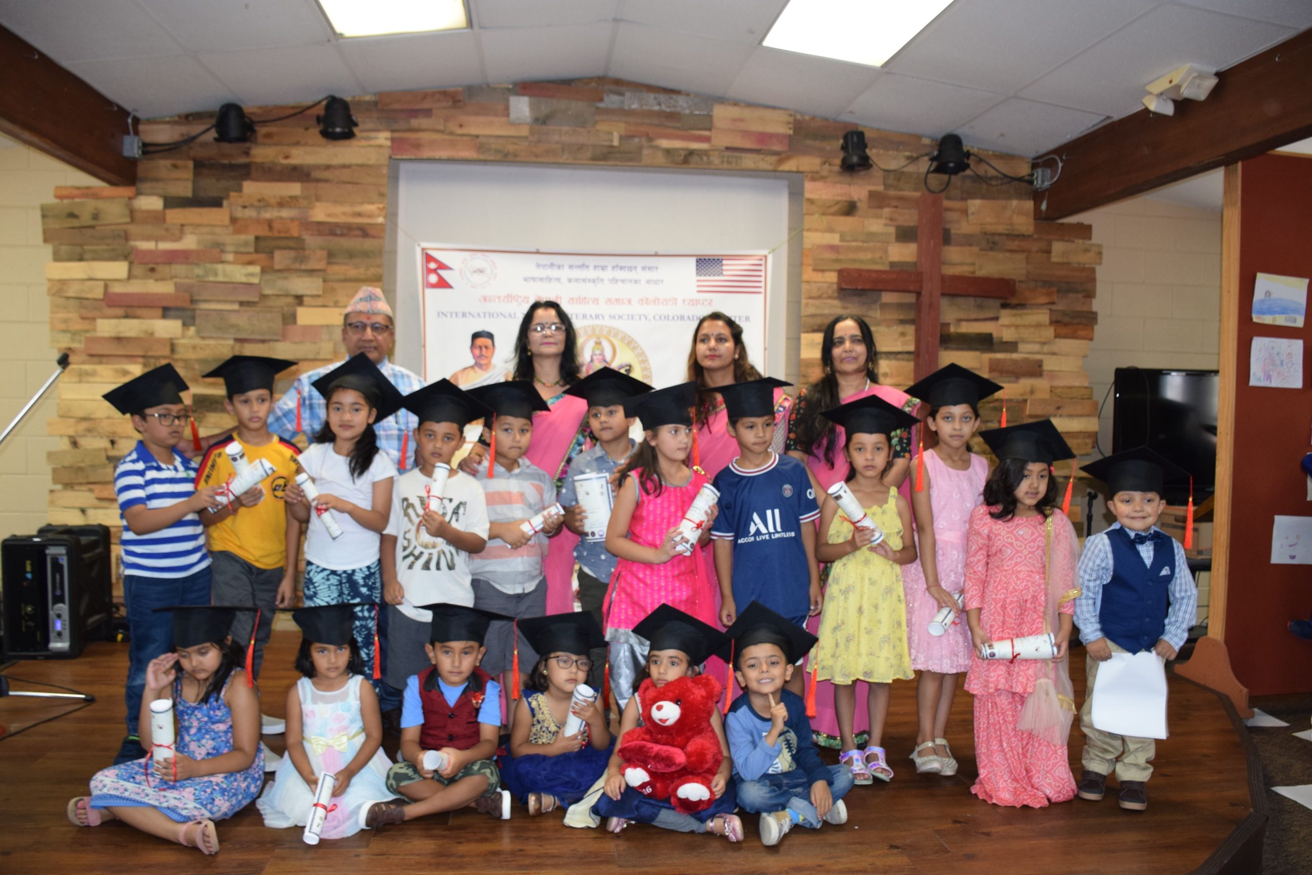 कोलोराडो । कोलोराडोको नर्थग्लेन स्थित क्रसरोड कम्युनिटी सेन्टरमा शनीवार एक समारोह बिच ग्रिष्म कालीन नेपाली भाषा पाठशालामा अध्यानरत बाल बालिकाहरुलाई दिक्षित भएको प्रमाण पत्र प्रदानगरी यस बर्षको भाषा कक्षा समापन गरिएको छ । कोलोराडोमा सकृय संस्थाहरु अन्तराष्ट्रिय साहित्य समाज कोलोराडो च्याप्टर , एनआरएन कोलोराडो च्याप्टर, नेपाली घर, रकी माउन्टेण्ड फ्रेन्ड्स अफ नेपाल, सिष्टर ग्रुप दिदी…