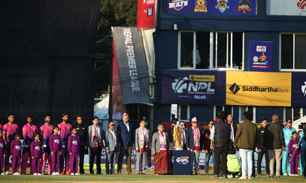काठमाडौं । प्रधानमन्त्री सुशीला कार्कीले दोस्रो संस्करणको सिद्धार्थ बैंक नेपाल प्रिमियर लिग (एनपिएल) को उद्घाटन गरेकी छन् । विशेष समारोहबीच भएको उद्घाटन कार्यक्रममा उनले साविक विजेता जनकपुर बोल्ट्स तथा काठमान्डु गोर्खाजका खेलाडीसँग परिचय गरेकी थिइन् । उद्घाटन समारोहलाई आकर्षक बनाउन खेल सुरू हुनुअघि हेलिकप्टरबाट मैदानमा पुष्पवृष्टि गरिएको थियो । दर्शकहरूले पनि उत्साहित छन् । उद्घाटनसँगै…