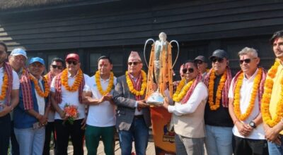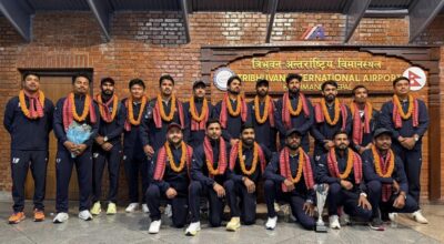 काठमाडौं । हङकङमा चलिरहेको हङकङ सिक्सेसमा नेपाल दोश्रो खेलमा दक्षिण अफ्रिकासँग पराजित भएको छ । आज बिहान भएको खेलमा दक्षिण अफ्रिकाले नेपाललाई चार विकेटले हराएको हो । नेपालले दिएको ५९ रनको लक्ष्य दक्षिण अफ्रिकाले तीन ओभर चार बलमा दुई विकेट गुमाएर भेट्टायो । दक्षिण अफ्रिकाका ब्लेक डेभिड सिम्पसनले सबैभन्दा धेरै अविजित ३० रन बनाए ।…