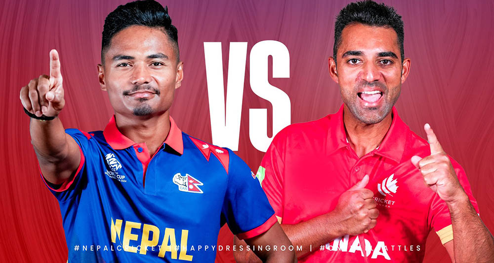 काठमाडौँ । नेपालले आइसीसी विश्वकप लिग- २ अन्तर्गत आज क्यानडाविरुद्ध खेल्दै छ । यो खेल नेपाली समय अनुसार राति ८: ४५ बजेदेखि ओन्टारियोस्थित किंग सिटी स्टेडियममा हुदै छ । यस सिरिजमा लगातार दुई खेलमा हार बेहोरेर नेपाल दबाबमा रहेको छ । नेपालले पहिलो खेलमा क्यानडासँग १०३ रनले हार बेहोरेको थियो भने दोस्रो खेलमा ओमानसँग एक…