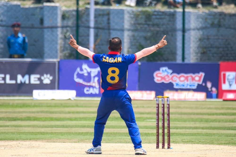 काठमाडौं । वेष्ट इन्डिज ‘ए’ विरुद्धको दोस्रो टी-२० खेलमा नेपाललाई दोस्रो सफलता मिलेको छ । तेस्रो ओभरको दोस्रो बल र पाँचौं बलमा नेपालका सागर ढकालले विकेट लिएका हुन् । उनले २.२ ओभरमा अलिक एथानाजेलाई कुशल मल्लबाट क्याच आउट गराएका थिए । लगत्तै २.५ ओभरमा जोनसन चार्लेसलाई ढकालले बोल्ड गरे । टीयु क्रिकेट मैदानमा टस जितेर…