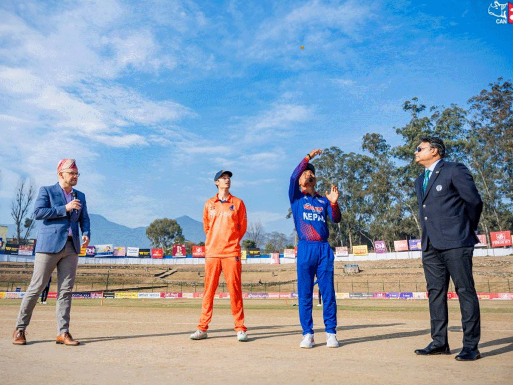 काठमाडौँ । नेपालले जारी त्रिकोणात्मक टी-२० सिरिजको दोस्रो खेलमा आज नेदरल्याण्डससँग खेल्दै छ । टियु मैदानमा हुने यो खेलमा नेपालले टस जितेको छ । नेपालका कप्तान रोहित पौडेलले टस जितेर पहिला बलिङ गर्ने निर्णय गरेका हुन् । योसँगै नेदरल्याण्डसले पहिला ब्याटिङ गर्ने भएको छ । मंगलबारदेखि शुरु भएको सिरिजमा नेपालले पहिलो खेलमा नामिबियासँग २० रनको…