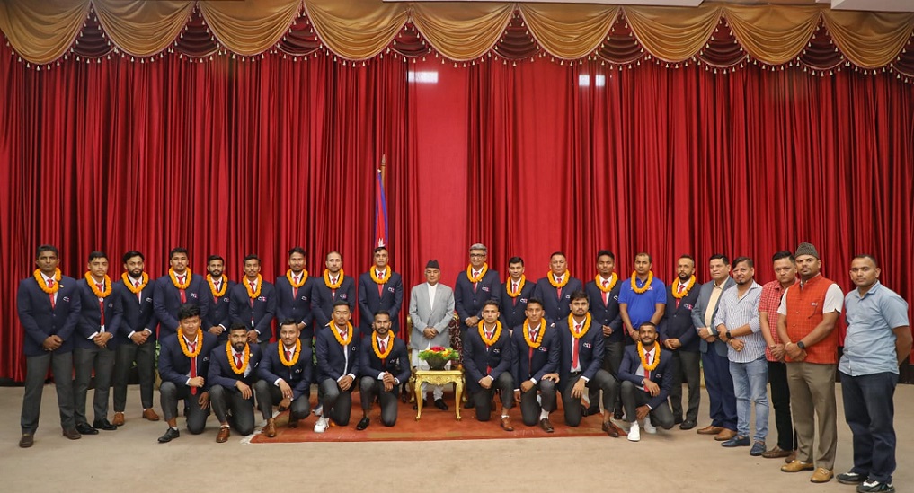 काठमाडौं । राष्ट्रपति रामचन्द्र पौडेलले एसिया कप क्रिकेट प्रतियोगितामा भाग लिन पाकिस्तान जान लागेको नेपाली राष्ट्रिय क्रिकेट टोलीलाई सफलताका लागि शुभकामना दिएका छन् । राष्ट्रपति भवन शीतल निवासमा आज आयोजित भेटघाटमा उनले सहभागी क्रिकेट खेलाडी, प्रशिक्षकलगायतलाई सफलताको शुभकामना दिएका हुन् । “यही भदौ १३ गतेदेखि पाकिस्तानमा सुरु हुने एसिया कप क्रिकेट प्रतियोगिता खेल्न जान लाग्नुभएकामा…