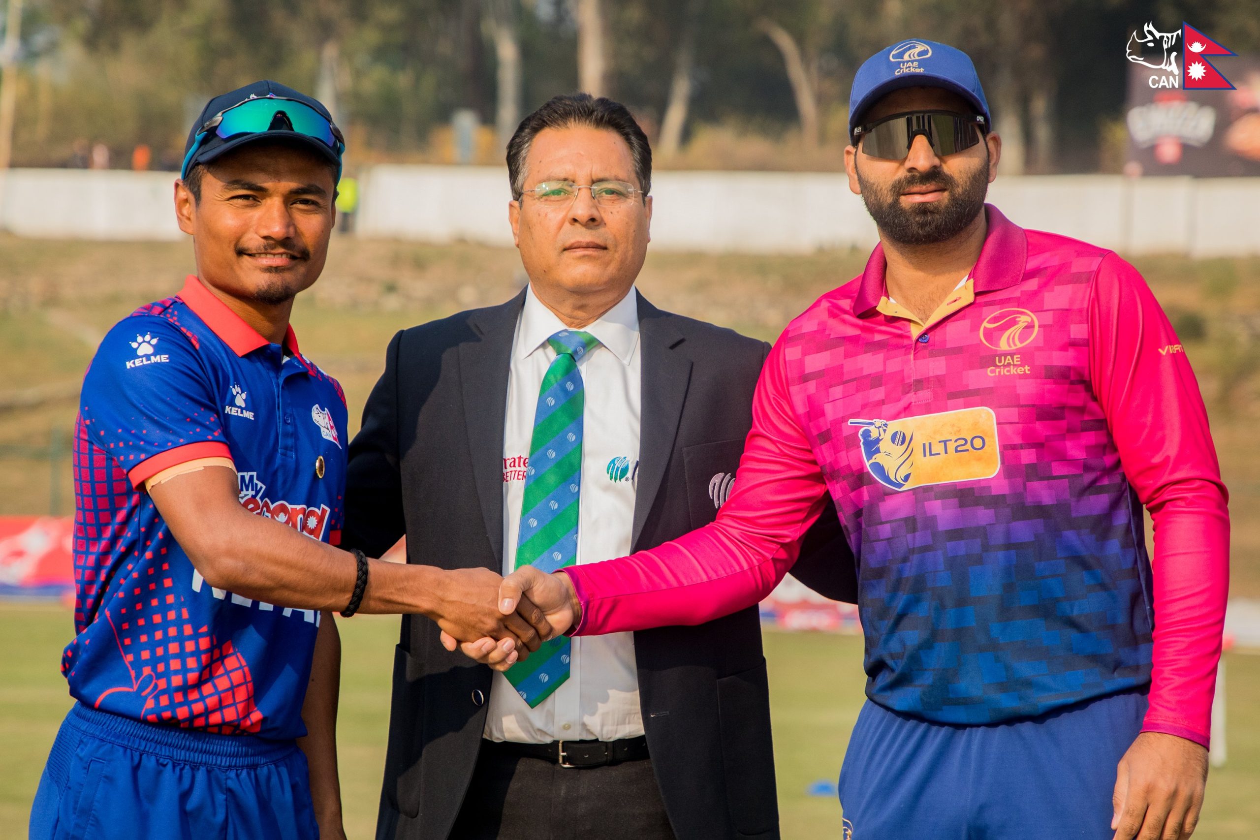 काठमाडौं । आईसीसी विश्वकप क्रिकेट लिग २ अन्तर्गत त्रिदेशीय एक दिवसीय शृङ्खलाको दोस्रो खेलमा नेपालले यूएई विरूद्ध पहिला ब्याटिङ गर्ने निर्णय गरेको छ । त्रिवि क्रिकेट मैदानमा केहिबेरमा सुरू हुने खेलमा नेपालका कप्तान रोहित पौडेलले टस जितेर पहिला ब्याटिङ रोजेका छन् । नेपालले आजको खेलमा ज्ञानेन्द्र मल्ल र करण केसीलाई बेन्चमा राखेको छ । उनीहरुको…