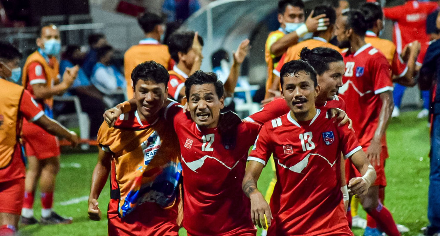 काठमाडौं । पहिलो खेलमै आयोजक तथा साविक विजेता माल्दिभ्सविरुद्ध सानदार जित र दोस्रो खेलमा श्रीलंकाविरुद्ध रोमाञ्चक विजयीसँगै नेपालले दक्षिण एसियाली फुटबल महासंघ (साफ) को पुरुष तर्फका ‘साफ च्याम्पियनसिप’मा बलियो प्रस्तुती देखाएको छ । नेपालले सुखद प्रदर्शन गर्दा बलिया मानिएका भारत र माल्दिभ्सले सोचे अनुसारको प्रदर्शन दिन सकेका छैनन् । जसकारण लगातार दुई खेल जितेको नेपालले…