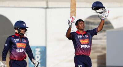 काठमाडौं । मध्यक्रम ब्याटर रवि बोपाराको अर्धशतकप्रेरित चितवन राइनोजले नेपाल प्रिमियर लिग (एनपीएल)मा विराटनगर किंग्सविरुद्ध १७५ रनको लक्ष्य प्रस्तुत गरेको छ । बुधबार कीर्तिपुरस्थित त्रिवि क्रिकेट मैदानमा जारी खेलमा टस हारेर ब्याटिङमा आएको चितवनले निर्धारित २० ओभरमा पाँच विकेट गुमाएर १७४ रनको योगफल खडा गर्यो । चितवनका बोपाराले सर्वाधिक ६५ रन बनाए । बोपाराले ३८…