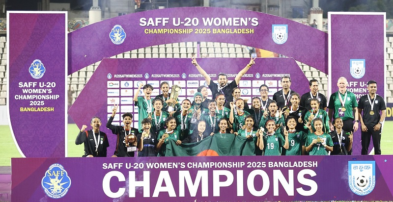 काठमाडौं । बंगलादेशले यू-२० महिला साफ च्याम्पियनशिप जितेको छ । अन्तिम खेलमा हिजो नेपाललाई ४–० गोलले हराउँदै बंगलादेश पाँचौं पटक च्याम्पियन बनेको हो । अहिलेसम्म बंगलादेश र भारतले मात्र यो प्रतियोगिताको उपाधि जितेका छन् । भारतले जम्मा २ पटक उपाधि जितेको छ । नेपाल तेस्रो पटक उपविजेतामा सीमित बन्यो । यसअघि सन् २०१८ र २०२३…