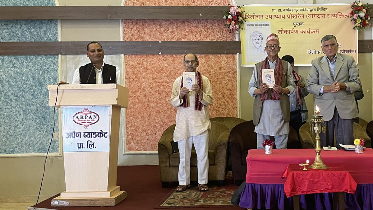 काठमाडौं । नेपाल एकीकरणका बेला महत्वपूर्ण योगदान पुर्याएका पोखरेल वंशका गौरव ‘त्रिलोचन उपाध्याय पोखरेल’ पुस्तक बुधबार लोकार्पण गरियो । योगदान र व्यक्तित्व झल्किएको उक्त पुस्तक इतिहासविद् दिनेशराज पन्त र सूर्यबहादुर सेन ओलीले संयुक्तरुपमा लोकार्पण गरेका हुन् । त्रिलोचन उपाध्याय (पोखरेल) अनुसन्धान प्रतिष्ठानले प्रकाशन गरेको उक्त पुस्तक प्रा.डा. कर्णबहादुर बानियाँले लेखेका हुन् । कार्यक्रममा प्रतिष्ठानका उपाध्यक्ष…
