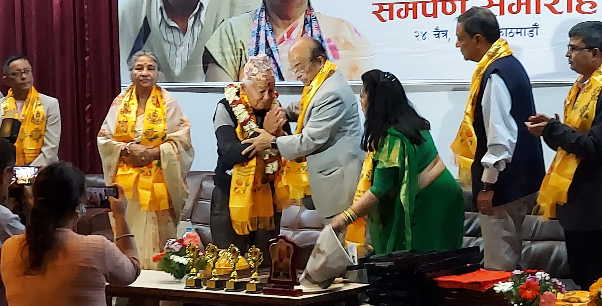 काठमाडौं । नेपाली कलासाहित्य डटकम प्रतिष्ठानले साहित्य, पत्रकारिता, ललितकला र सङ्गीत क्षेत्रमा विशिष्ट योगदान पु-याउने छ जना स्रष्टालाई सम्मान र पुरस्कार प्रदान गरेको छ । प्रतिष्ठानद्वारा बिहीबार यहाँ आयोजित समारोहमा यस वर्षको राष्ट्रिय कलाश्री सम्मानबाट विशिष्ट साहित्यसाधक प्ररशु प्रधान सम्मानित हुनुभएको छ । वरिष्ठ साहित्यकार मञ्जु काँचुलीलाई रु एक लाख राशिसहित राष्ट्रिय कलाश्री पुरस्कार प्रदान…
